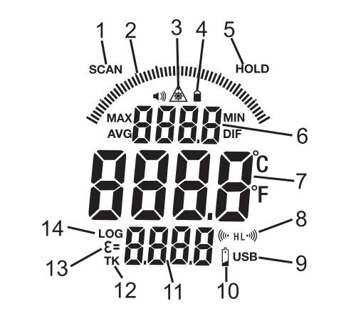 11. 發(fā)射率或 K 型或存儲(chǔ)值顯示