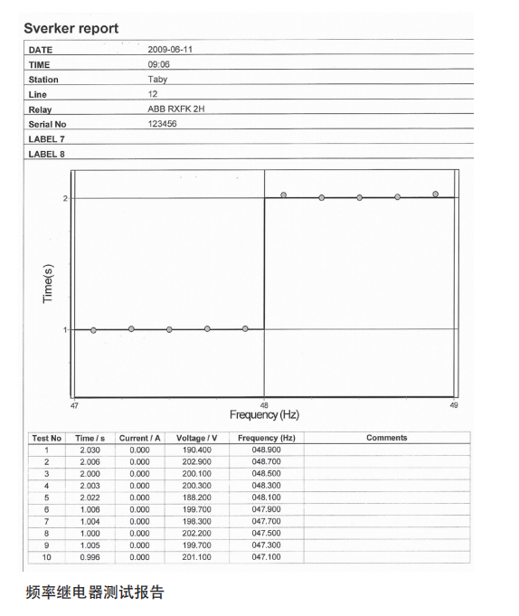 在繼電器測試時,每個被測值儲存在日志明細表上。您可在這張表的每個測試點添加評論。當整個測試完成后,您可以把所有內容保存為數(shù)據(jù)文件。稍后您可以打印測試結果。您可以不用現(xiàn)場寫報告,從而節(jié)省了時間。所有的報告書寫可以在辦公室方便地完成。SVERKER Win軟件提供了連接說明、測試說明和其他您需要預先準備事項的簡單調閱。這些圖形和文字說明的準備可以使用標準Word處理包。