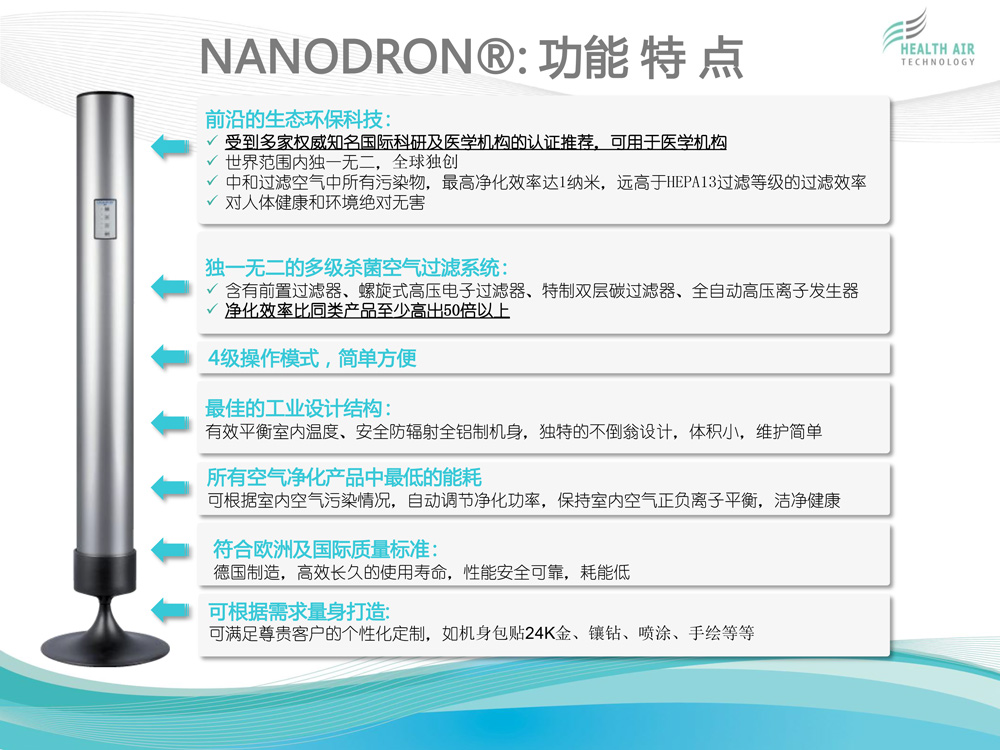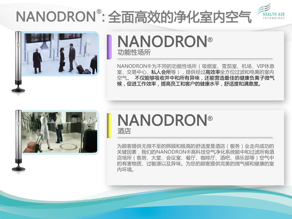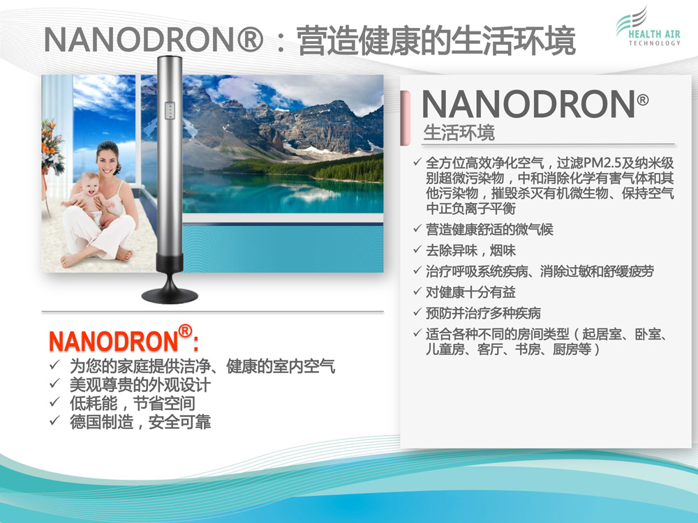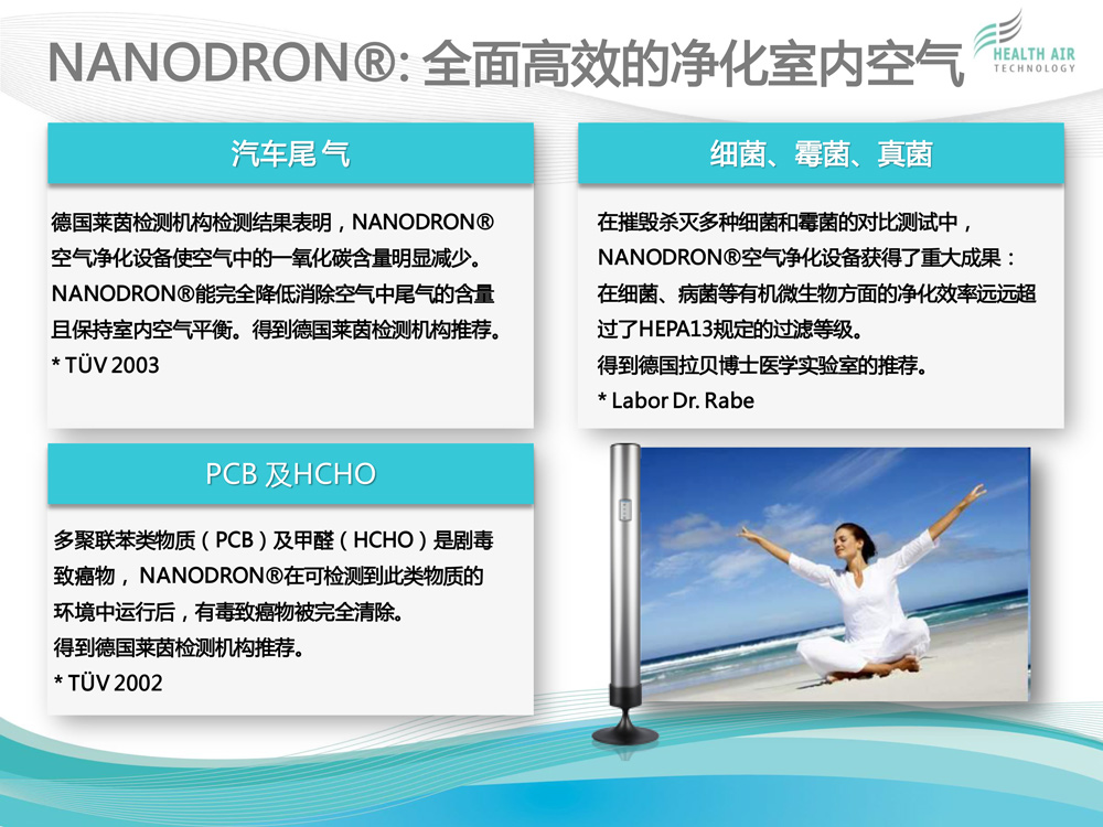 HEALTH AIR TECHNOLOGY GmbH(健康空氣技術有限公司)致力于獨特的高科技空氣凈化系統(tǒng)NANODRON?的開發(fā)、生產和銷售。 公司總部及研發(fā)與生產部門位于德國普福爾茨海姆。過去12年來,為了保證在全球范圍內維持公司特有的質量標準與技術規(guī)格,我們建立了一個銷售...[查看更多]