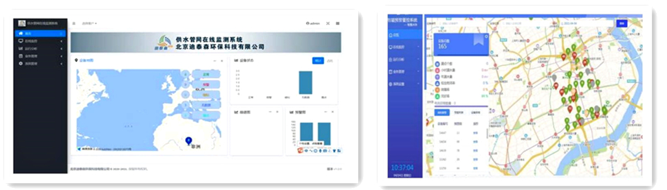 智能漏水系統(tǒng)由系統(tǒng)總覽、在線監(jiān)控、漏水分析、業(yè)務管理、工單處理等模塊組成。1)系統(tǒng)總覽:地圖上展示紅、黃、綠漏水噪音狀態(tài)