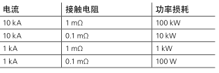 10 kA時(shí)0.1 mΩ電阻使功率損耗達(dá)到10 kW。一個(gè)點(diǎn)上有這樣的功率損耗在必然導(dǎo)致溫度的升高,造成過(guò)熱和前期故障