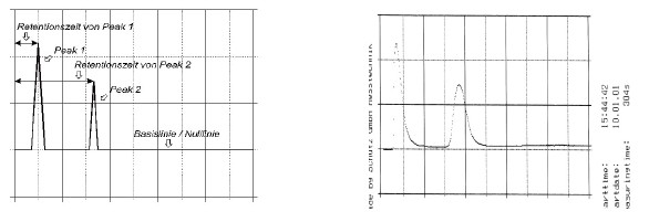 ?左圖為理想的天然氣色譜分離圖,標(biāo)出的時(shí)間是停滯時(shí)間。右圖是PGC實(shí)際打印的天然氣色譜分離圖,也稱為測量結(jié)果。