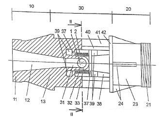 該發(fā)明的目的是,給出一個(gè)磁感應(yīng)的流量計(jì),它克服上述的問題并且其塑料外殼不僅耐受源自測量液體的內(nèi)壓,而且也耐受拉應(yīng)力以及其它熱的和機(jī)械的負(fù)荷。