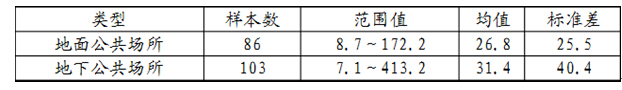 表1 北京市地面與地下公共場所平均氡濃度比較(Bq/m3)