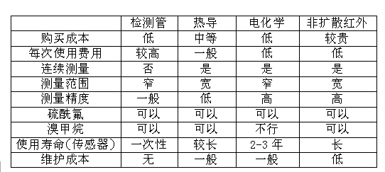 對(duì)檢測(cè)儀器的要求:檢測(cè)精度為1ml/m3