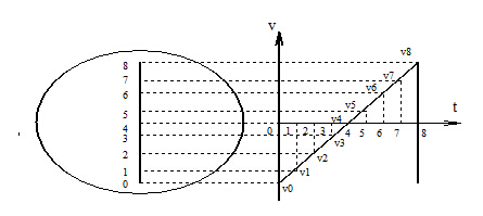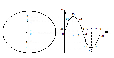 如果將被測(cè)信號(hào)電壓加到垂直偏轉(zhuǎn)板上,鋸齒波掃描電壓加到水平偏轉(zhuǎn)板上,而且被測(cè)信號(hào)電壓的頻率等于鋸齒波掃描電壓的頻率,則熒光屏上將顯示出一個(gè)周期的被測(cè)信號(hào)電壓隨時(shí)間變化的波形曲線(如下圖所示)。由下圖所示可見,在時(shí)間t=0的瞬間,信號(hào)電壓為Vo(零值),鋸齒波電壓為V0′(負(fù)值),熒光屏上光點(diǎn)在坐標(biāo)原點(diǎn)左面,位移的距離正比于電壓V0′;在時(shí)間t=1的瞬間,交流電壓為V1(正值),鋸齒波電壓為V1′(負(fù)值),熒光屏上光點(diǎn)在坐標(biāo)的第Ⅱ象限中。同理,在時(shí)間t=2,t=3,…,t=8的瞬間,熒光屏上光點(diǎn)分別位于2,3,…,8點(diǎn)。在t=8瞬間,鋸齒波電壓由*大正值V8′跳變到*大負(fù)V0′,因而熒光屏上的光點(diǎn)也從8點(diǎn)極其迅速地向左移到起始位置0點(diǎn)。以后,在被測(cè)周期信號(hào)的第二個(gè)周期、第三個(gè)周期……都重復(fù)*個(gè)周期的情形,光點(diǎn)在熒光屏上描出的軌跡也都重疊在*次描出的軌跡上。所以,熒光屏上顯示出來的被測(cè)信號(hào)電壓是隨時(shí)間變化的穩(wěn)定波形曲線。