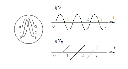 正弦信號(hào)和鋸齒波信號(hào)在熒光屏上的合成圖形